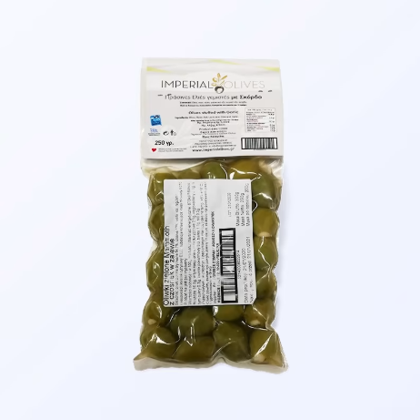 Oliwki Zielone Nadziewane Czosnkiem 250 g – Imperial Olives
