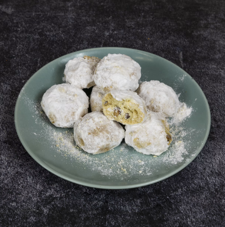 Każde ciasteczko to małe dzieło sztuki cukierniczej – kruche, maślane, z chrupiącym migdałem w środku 🌰 i obficie obsypane delikatnym cukrem pudrem 🍥. Ich smak przeniesie Cię prosto do greckiego domu w czasie świąt – ciepłego, pachnącego wanilią i masłem... 🕯️🎶