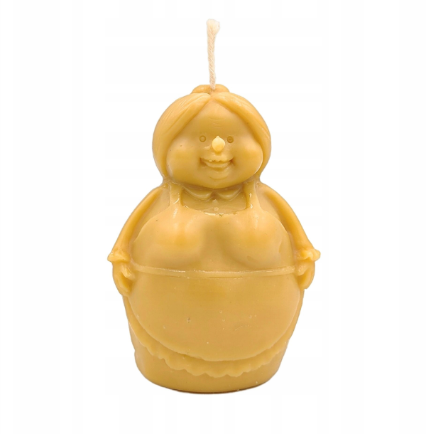 Ręcznie odlewana świeca z czystego wosku pszczelego w kształcie sympatycznej babci to ciepły symbol miłości, troski i rodzinnych wspomnień. Jej naturalny blask i miodowy zapach wprowadzają do wnętrza atmosferę spokoju, harmonii i domowego ciepła.